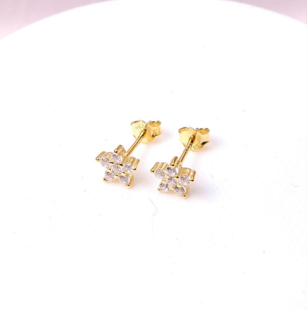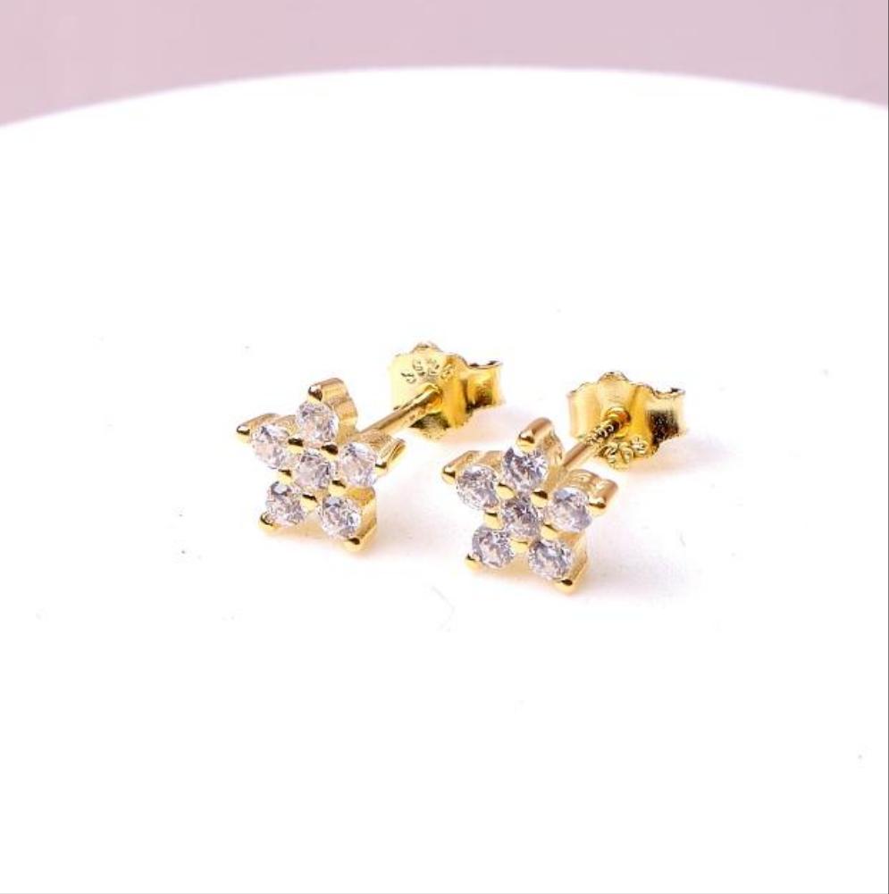• Aretes de plata con baño de oro y pequeñas circonitas.