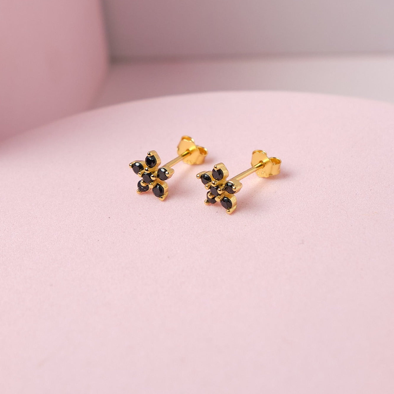• Aretes de plata, baño de oro y pequeñas circonitas.