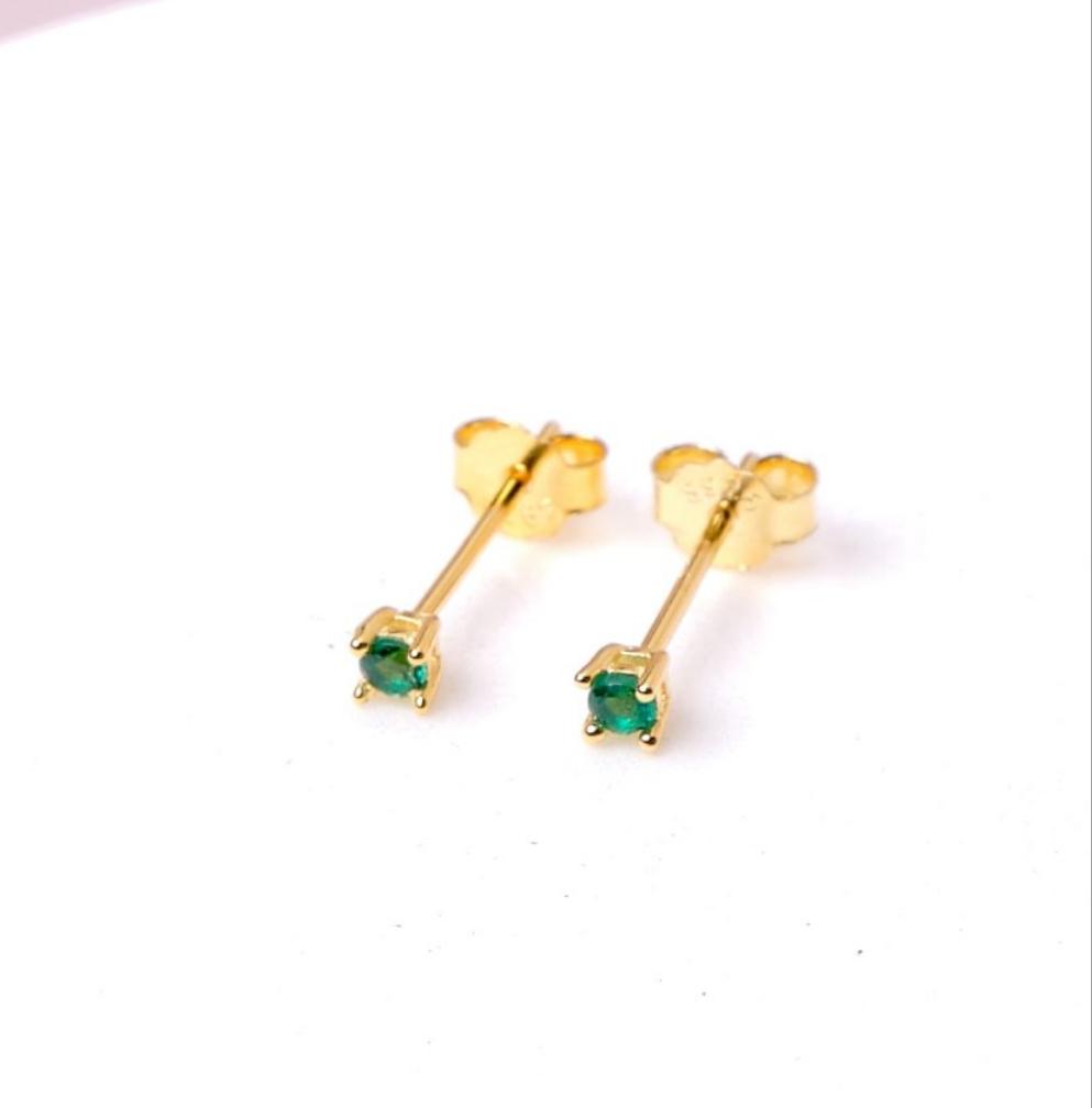 • Aretes de plata con baño de oro y pequeñas circonita verde.