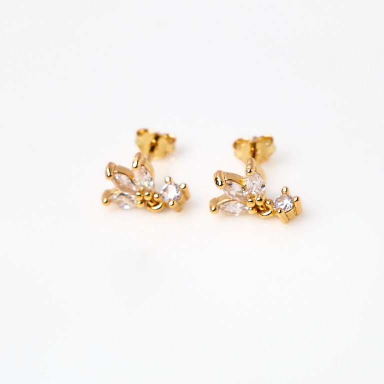 • Aretes de plata, baño de oro y pequeñas circonitas.