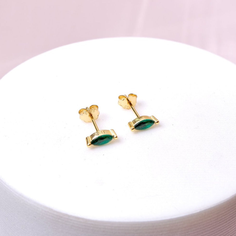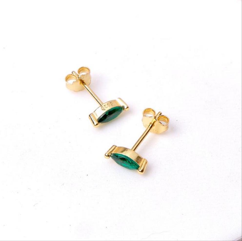 • Aretes de plata, baño de oro y pequeñas circonitas verdes.