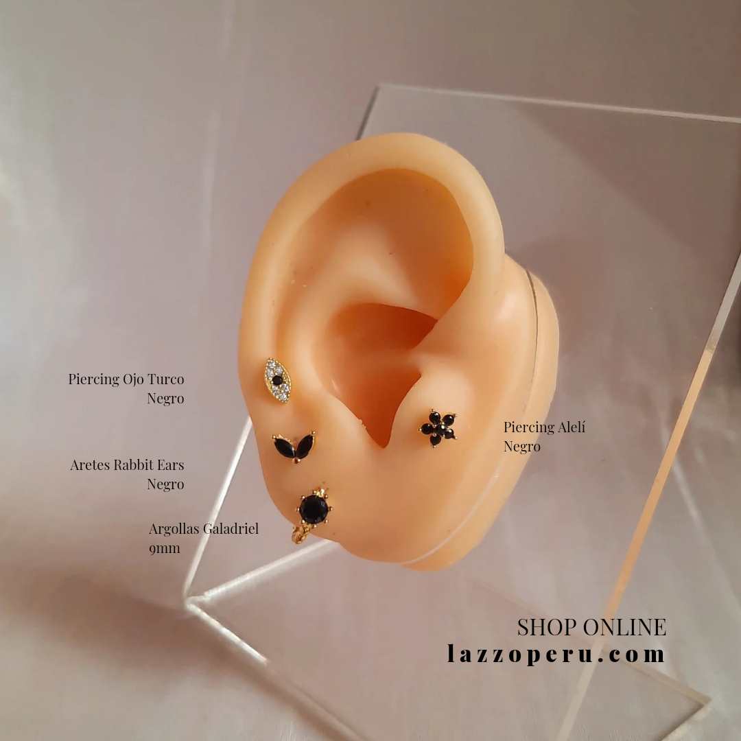 Aretes Rabbit Ears - Gold - 6X5 mm- Negro
