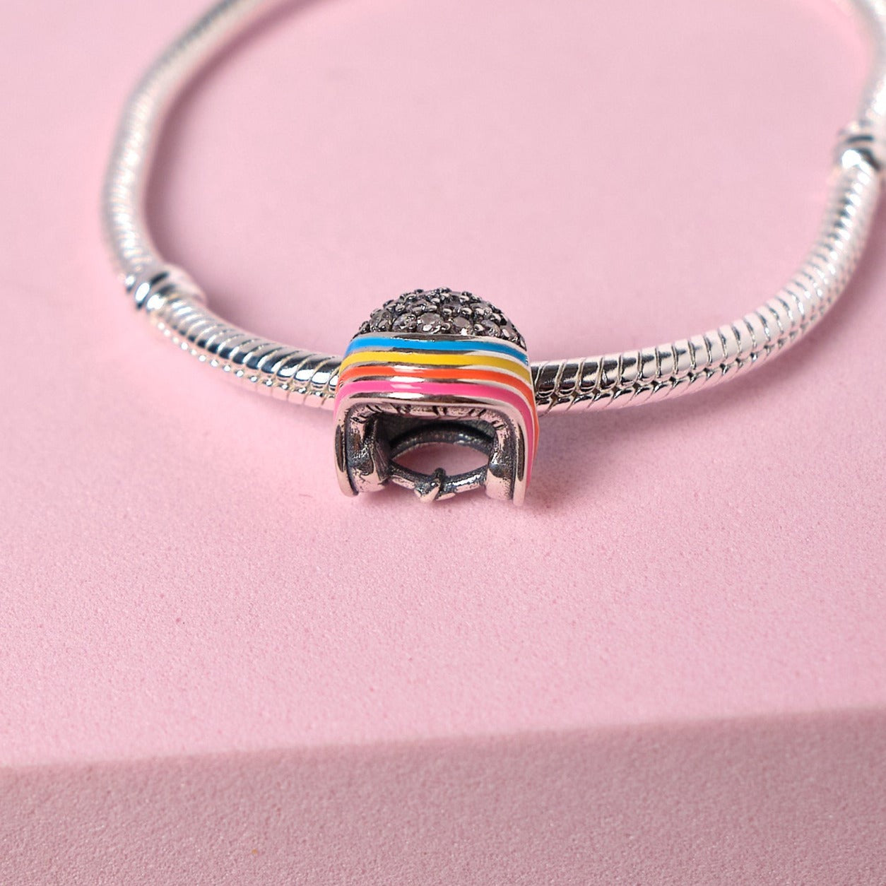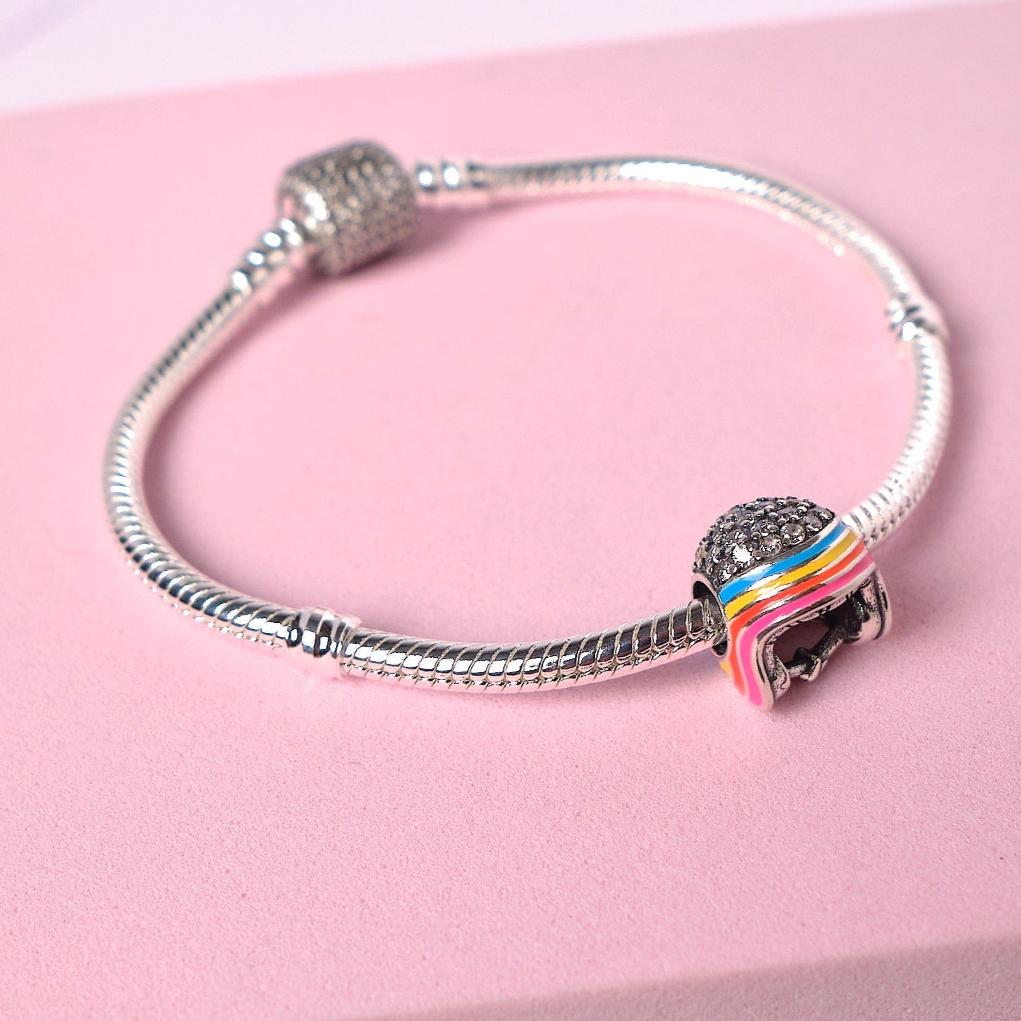 • Charm (dije) casco de plata 925, se adapta a cualquier pulsera.