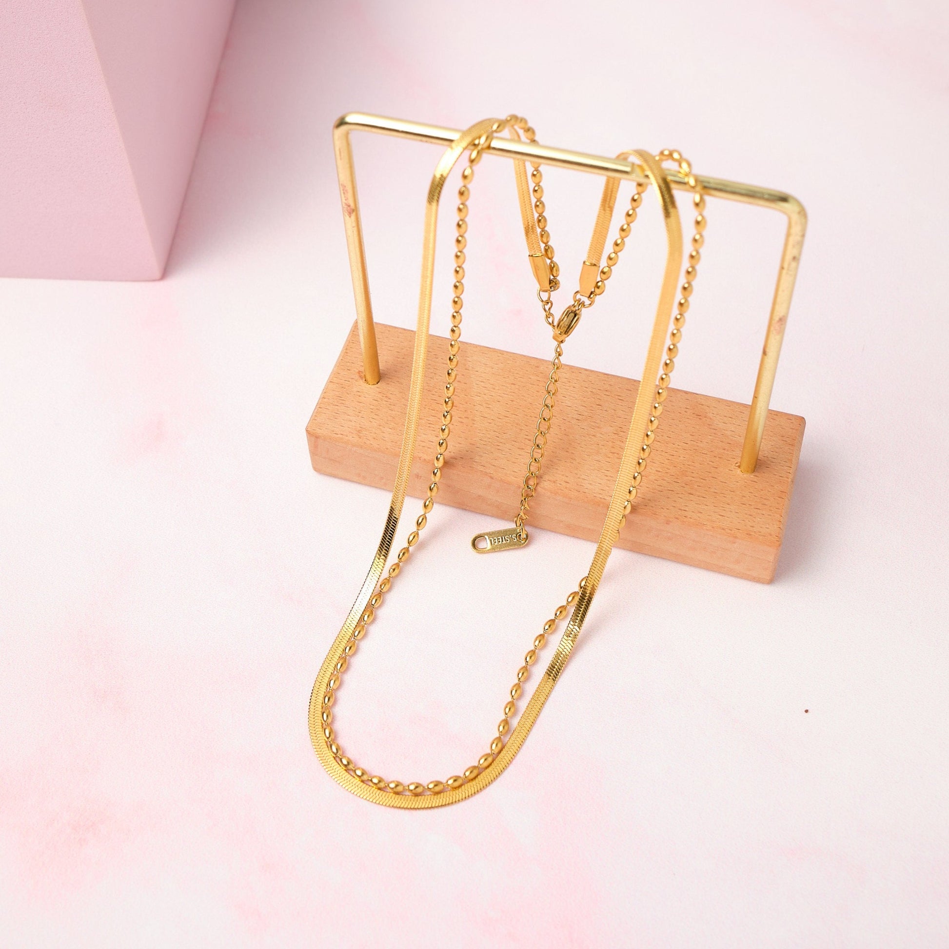 • Collar de doble caída en acero inoxidable 316L.