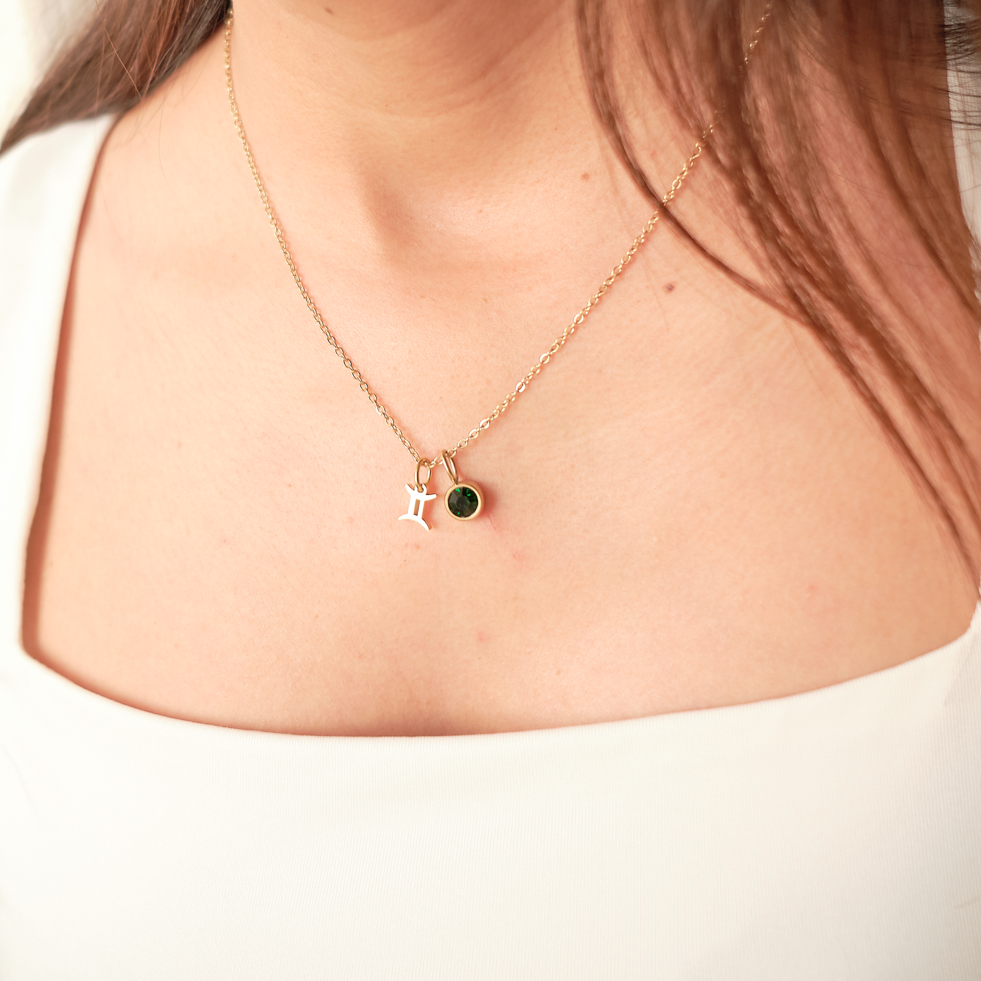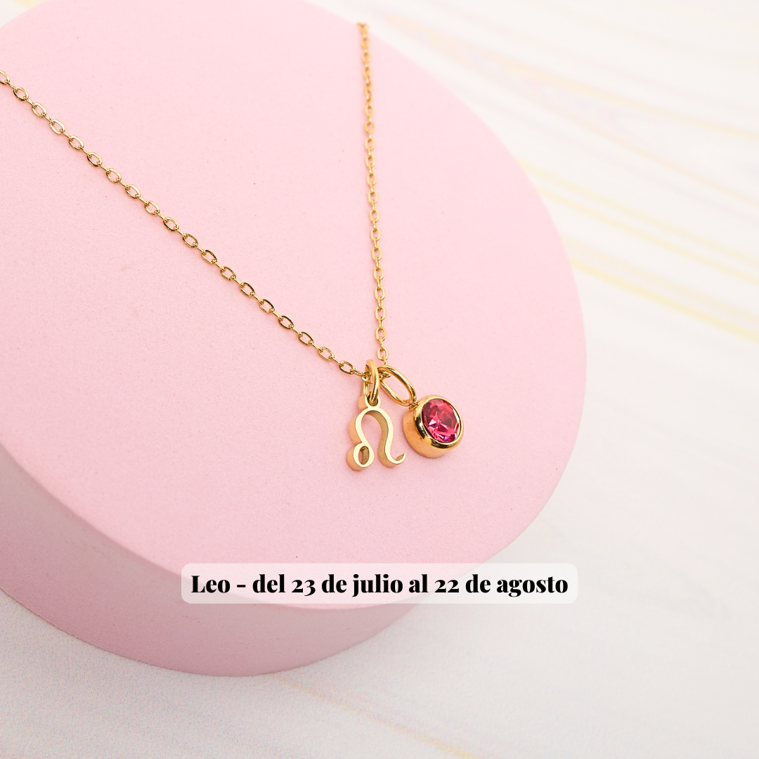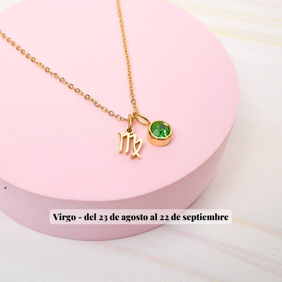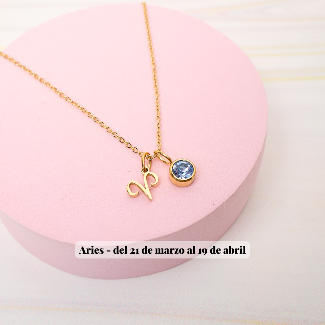 • Conexión celestial. Collar de acero inoxidable con el símbolo de tu signo zodiacal y piedra de nacimiento, llevando contigo la energía y el significado de tu signo en cada momento.