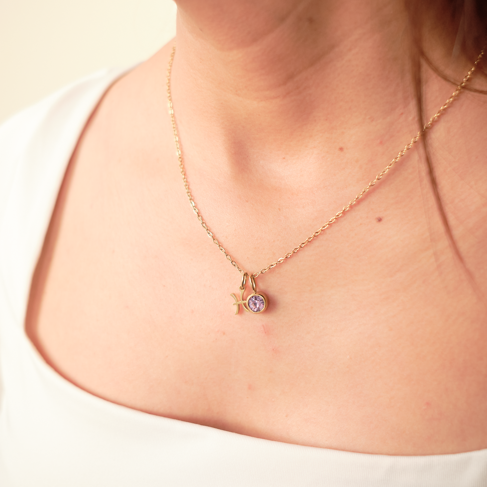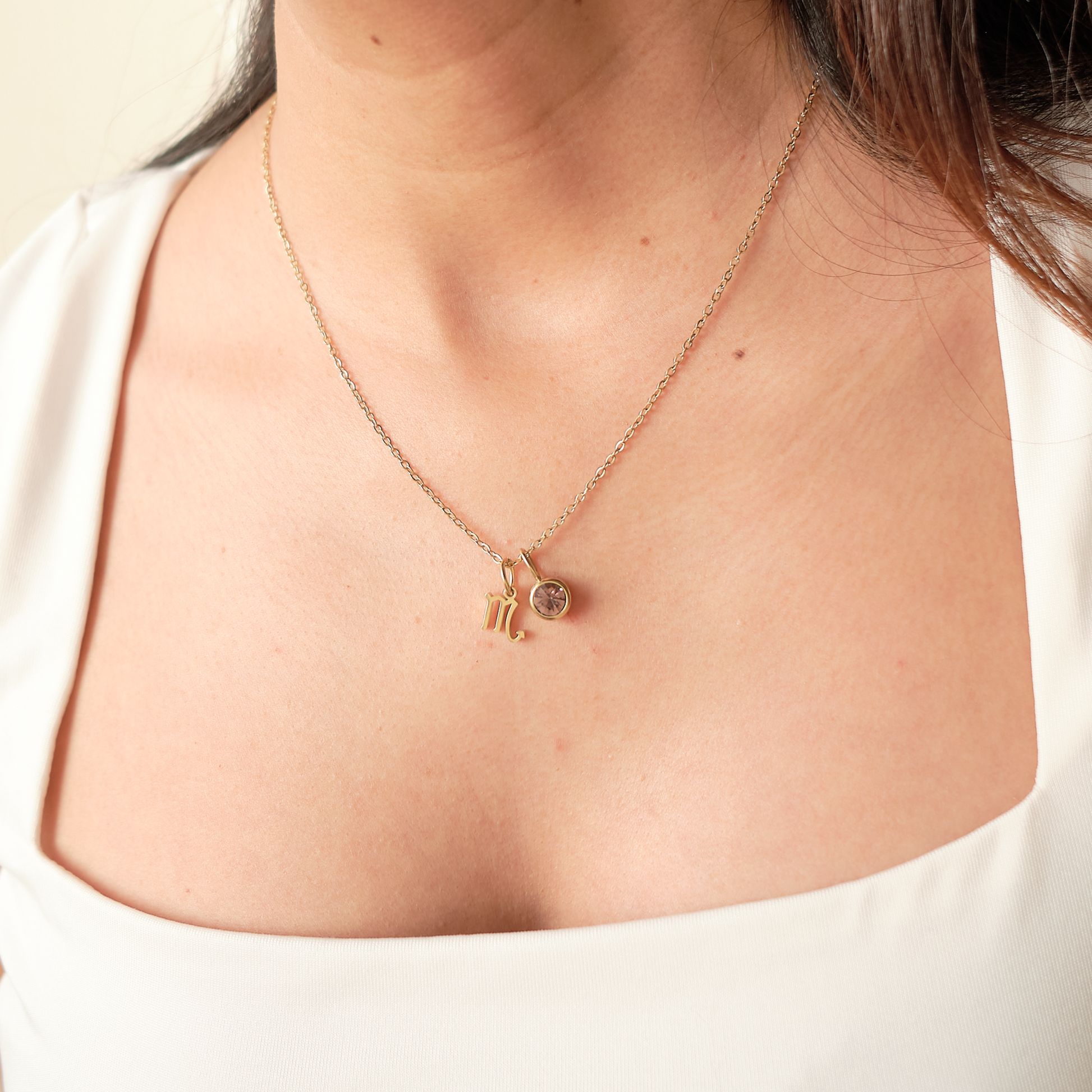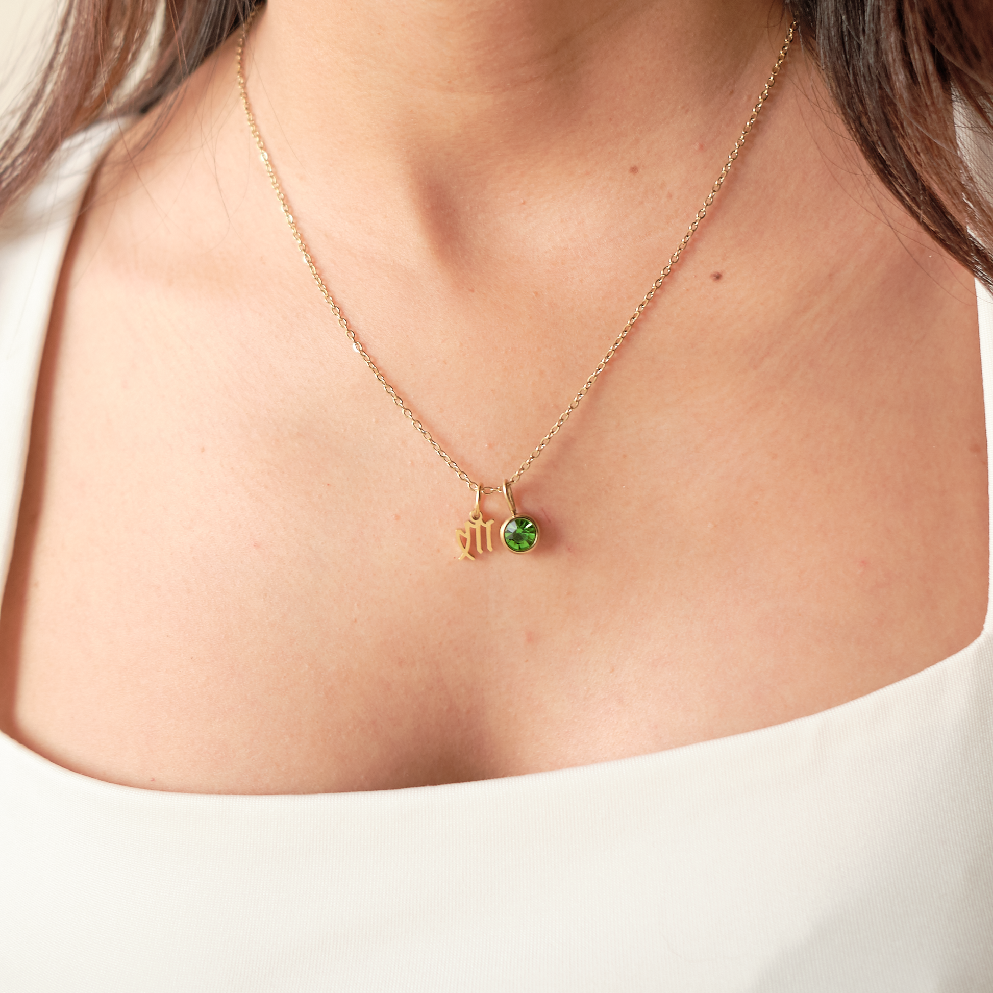 • Conexión celestial. Collar de acero inoxidable con el símbolo de tu signo zodiacal y piedra de nacimiento, llevando contigo la energía y el significado de tu signo en cada momento.