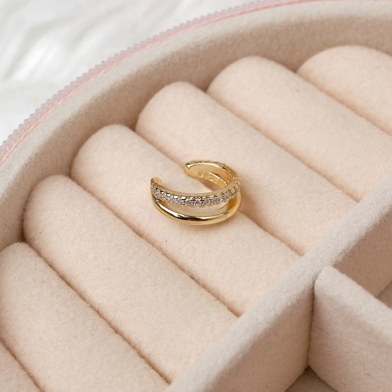 • Ear cuff de plata, baño de oro y circonita blanca.