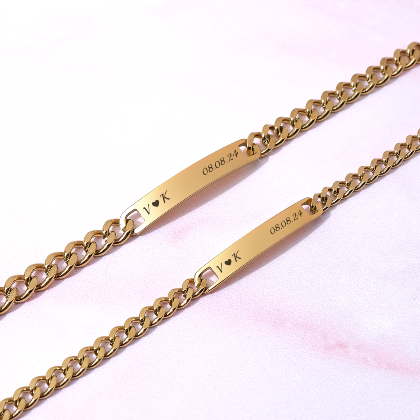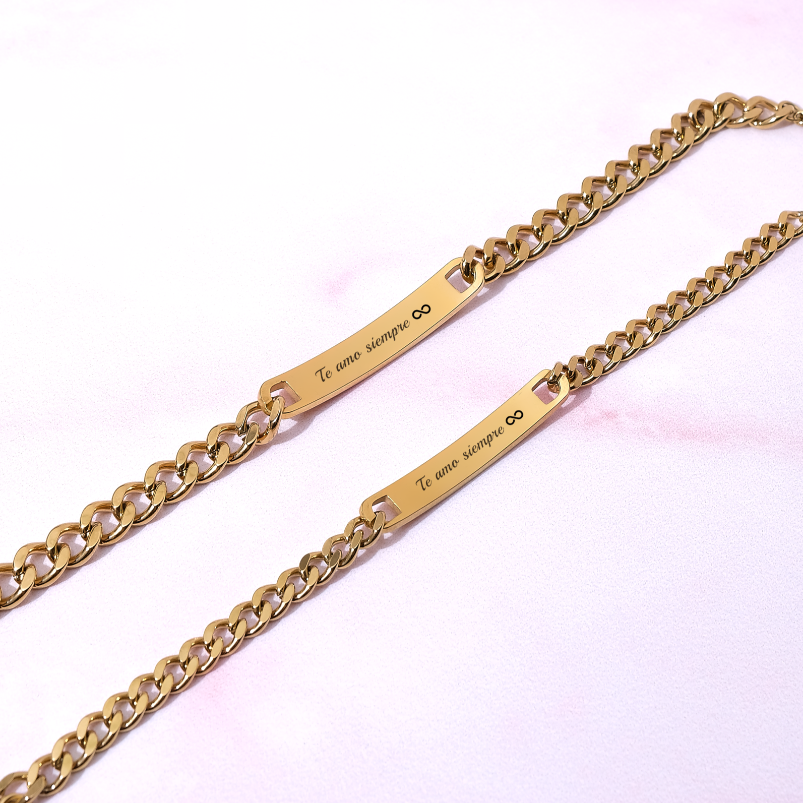 • Pulseras para pareja personalizadas de acero inoxidable, incluye grabado láser.
