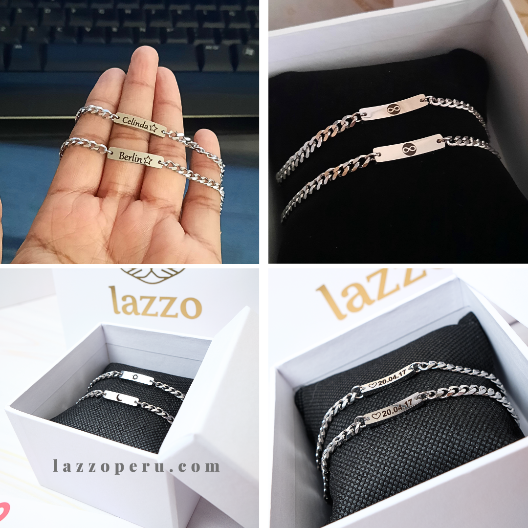 • Pulseras personalizadas para parejas de acero inoxidable, incluye grabado láser.