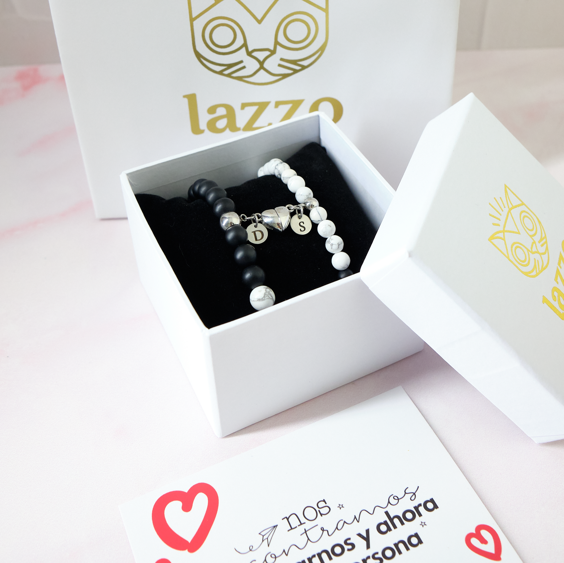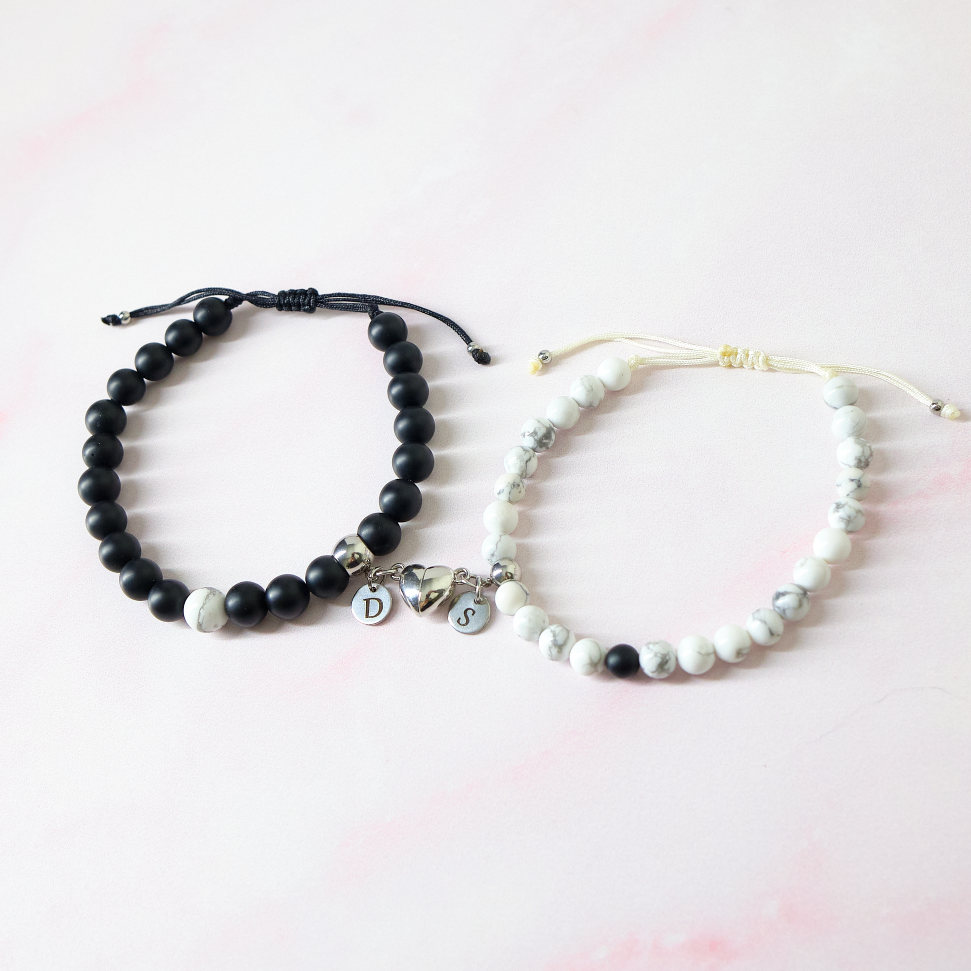 Pack - Pulseras Distancia -Howlita Blanco & Onix Negro Mate - Personalizadas