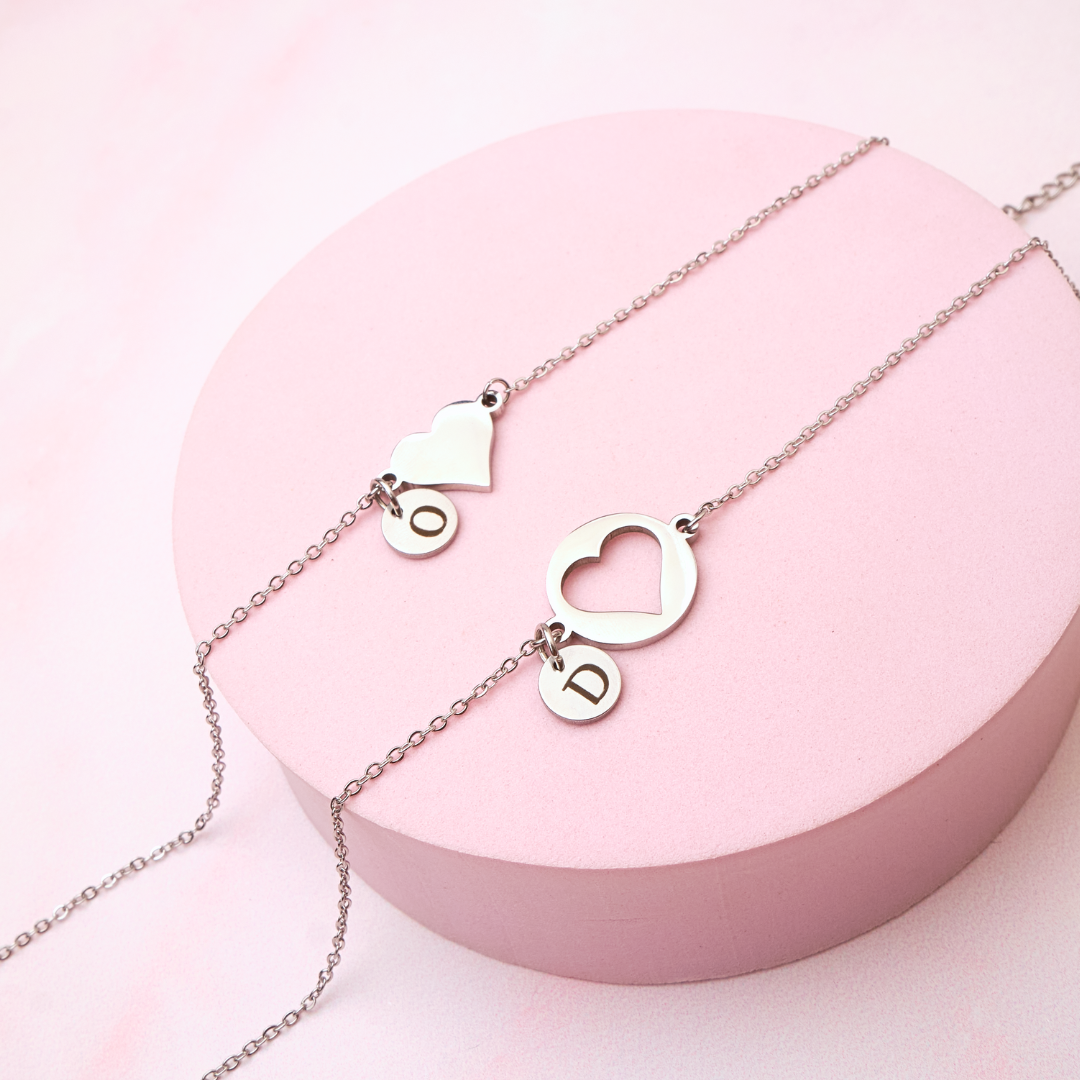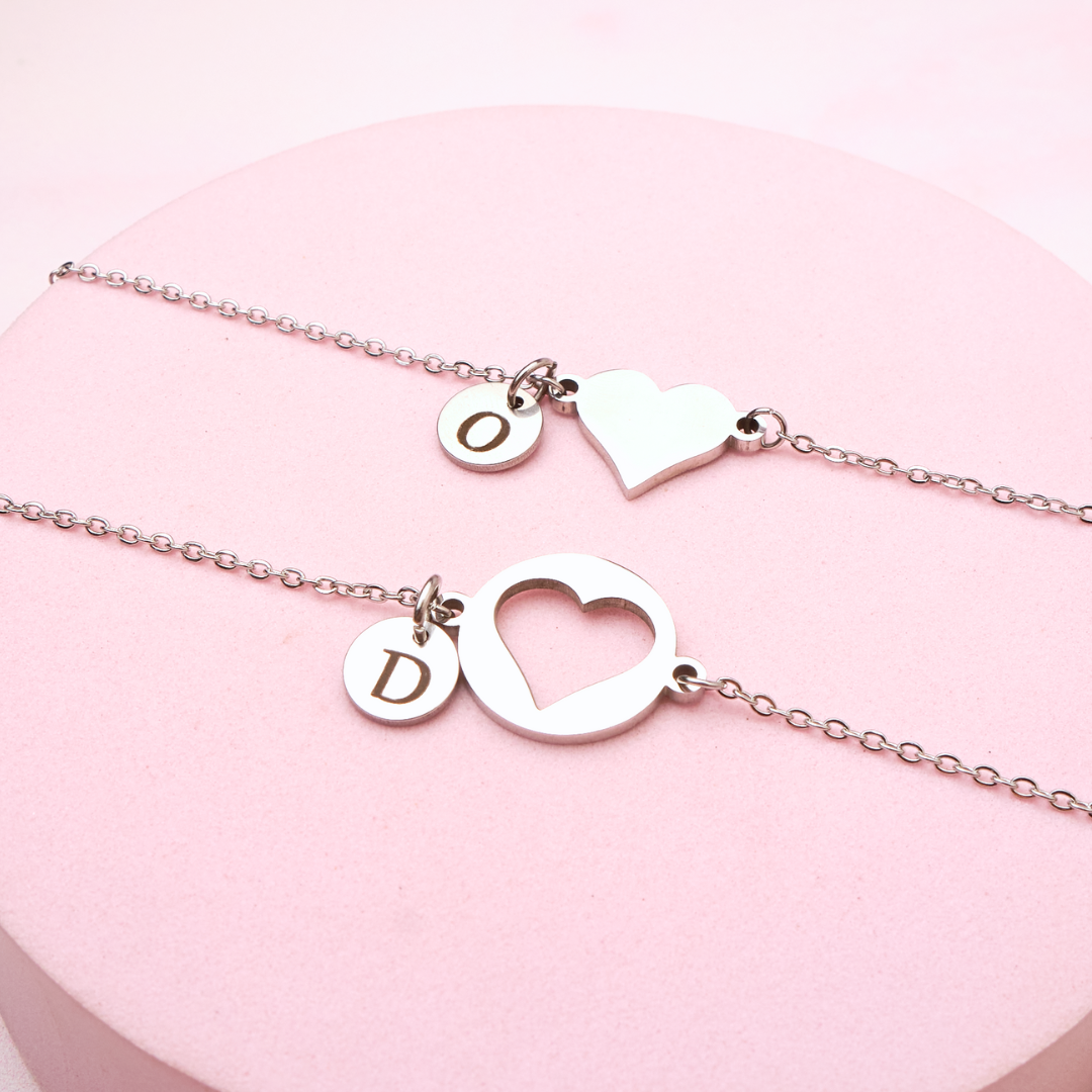 • Pulseras de acero inoxidable, incluye grabado láser de iniciales, fecha, símbolos.