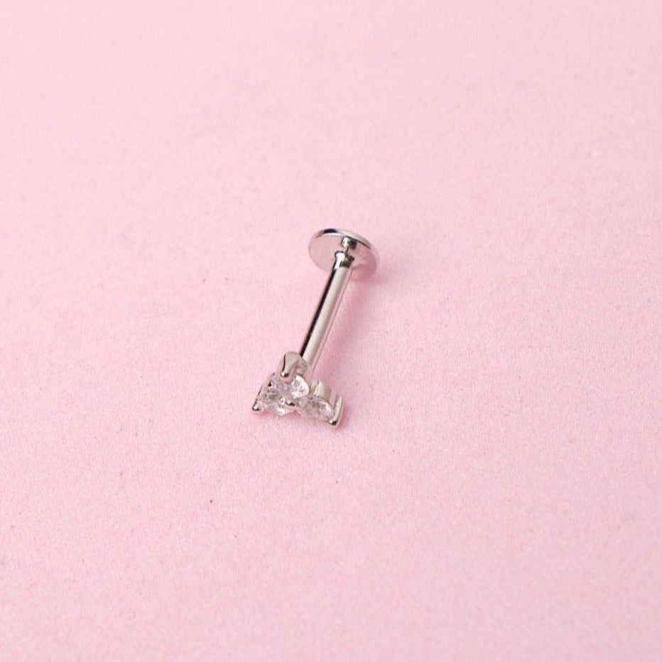 • Piercing para oreja de plata y pequeñas circonitas blancas.