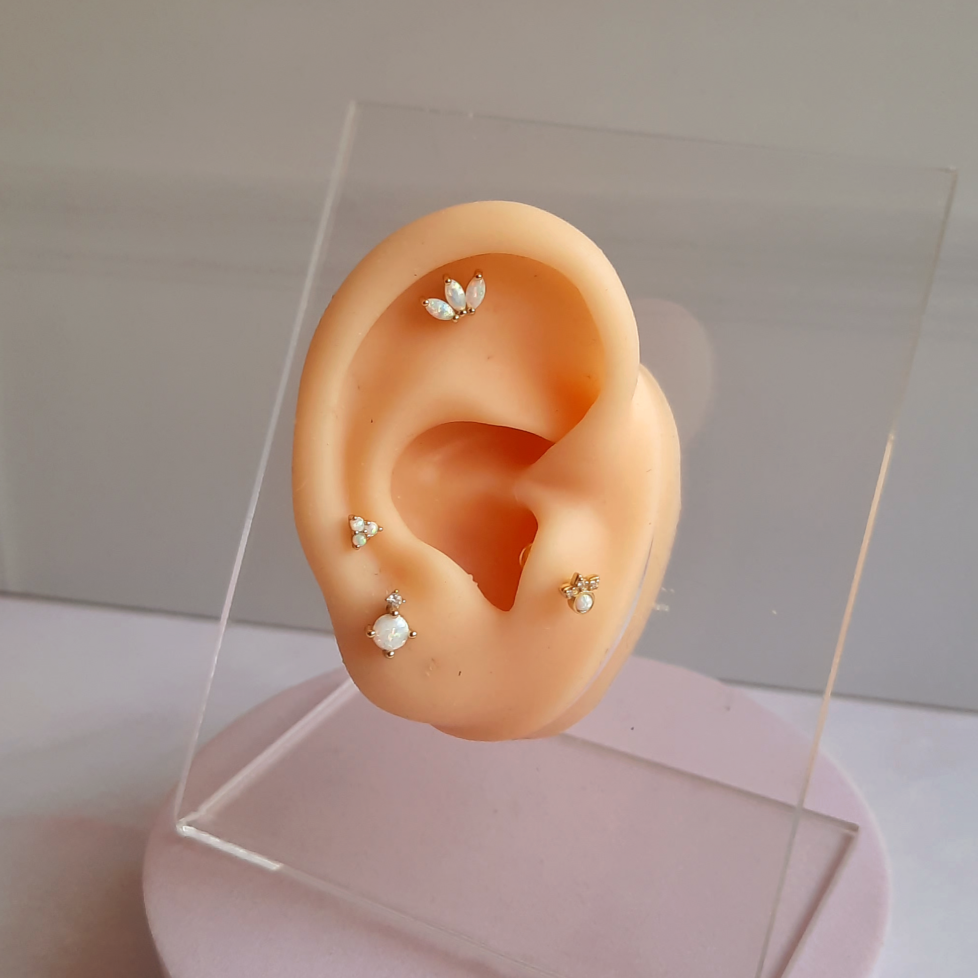 • Piercing para oreja de plata con baño en oro, con pequeños ópalos.