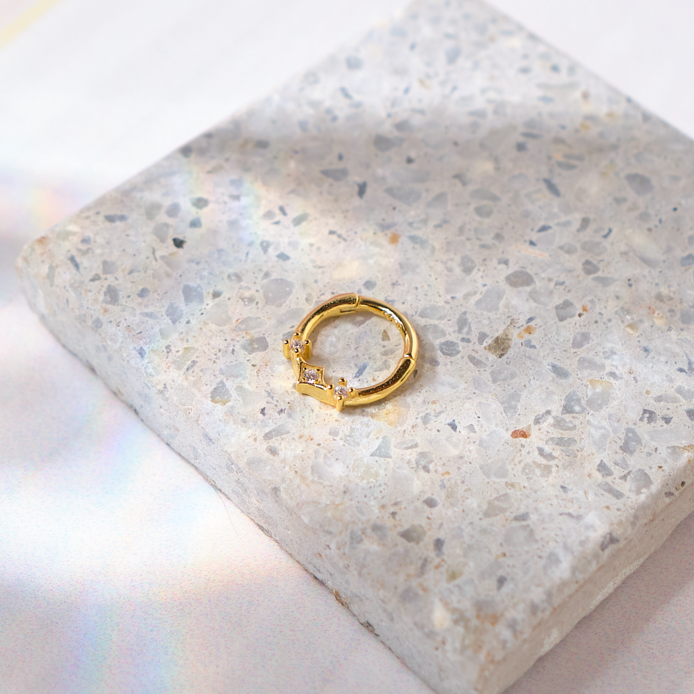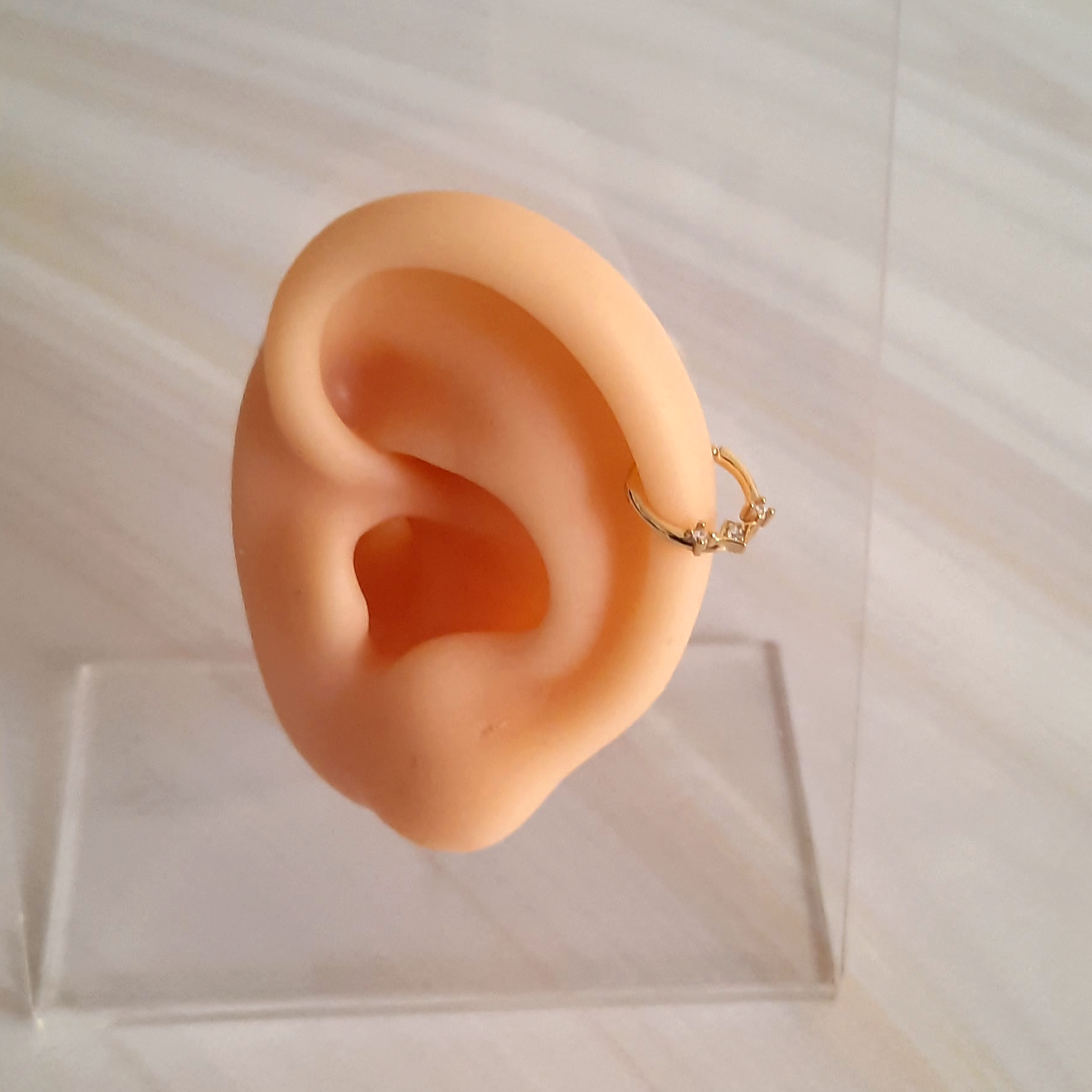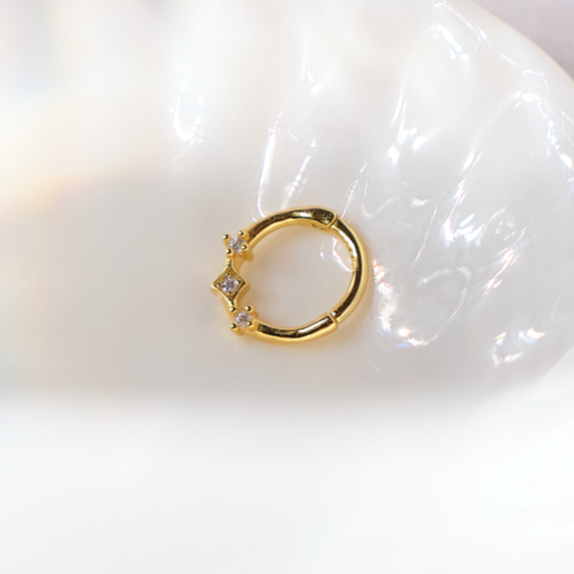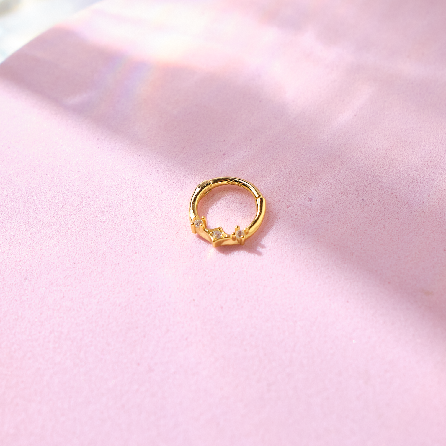 • Piercing para oreja o nariz de plata con baño en oro y circonitas blancas.