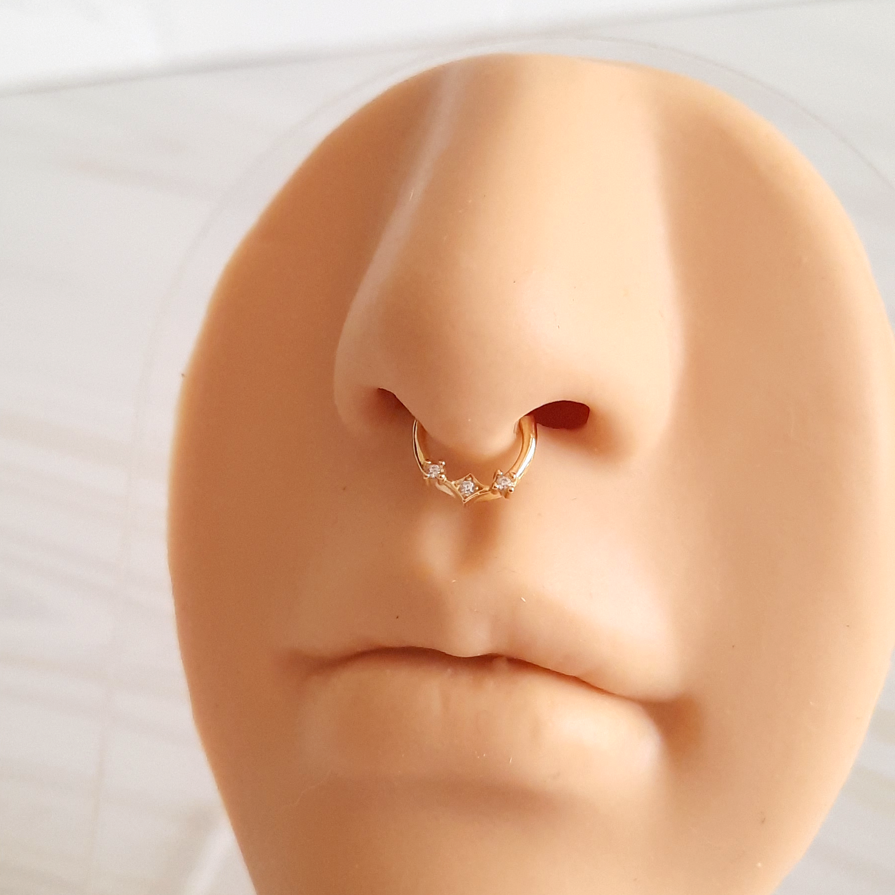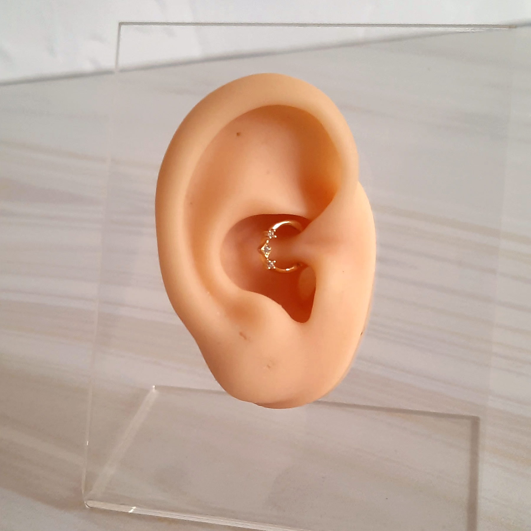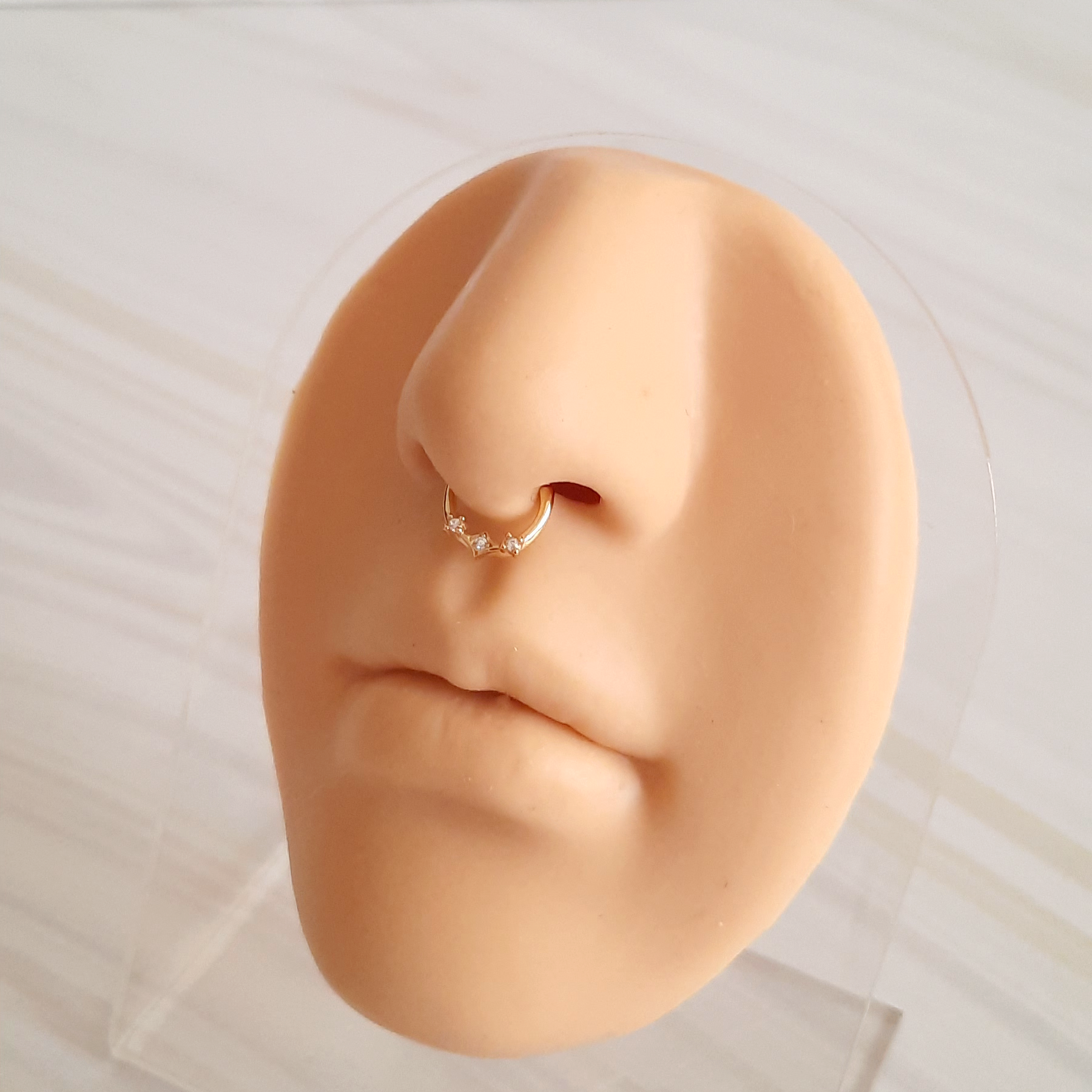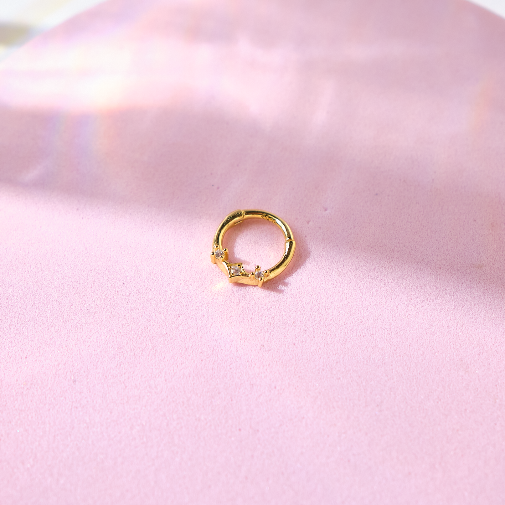 • Piercing para oreja o nariz de plata con baño en oro y circonitas blancas.