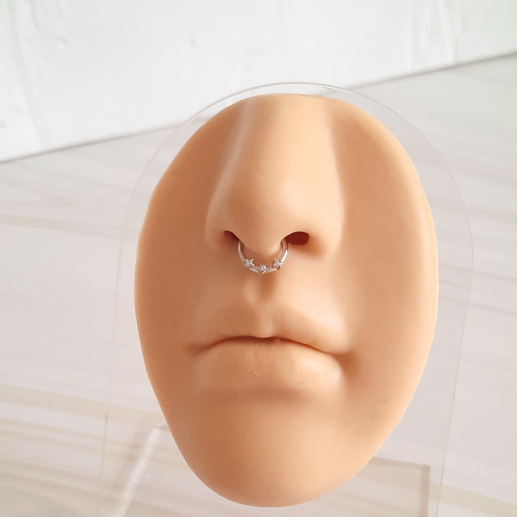 • Piercing para oreja o nariz de plata y circonitas blancas.