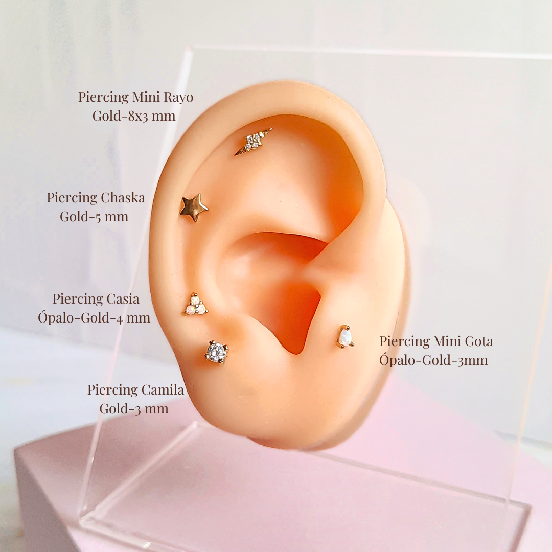 •  Uso: Lóbulo superior, tragus,  hélix, flat.