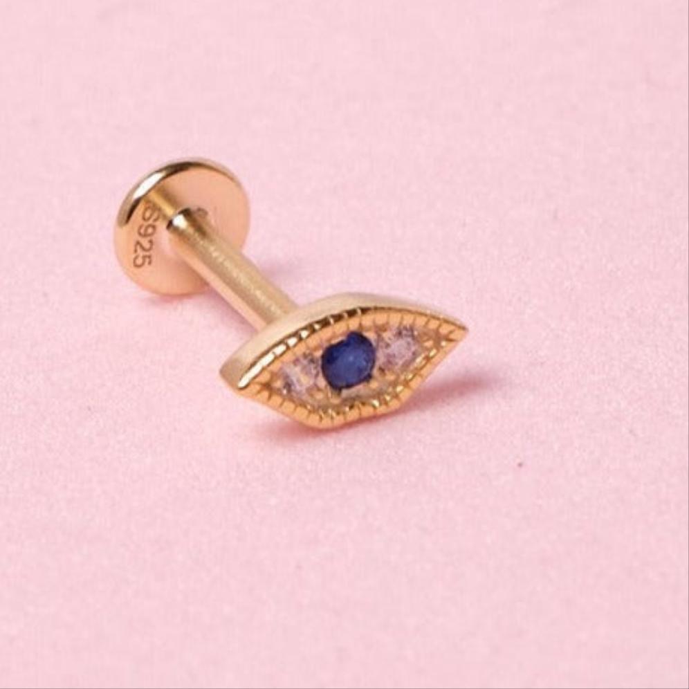 Piercing Ojo Turco - Azul - Gold -6x3mm