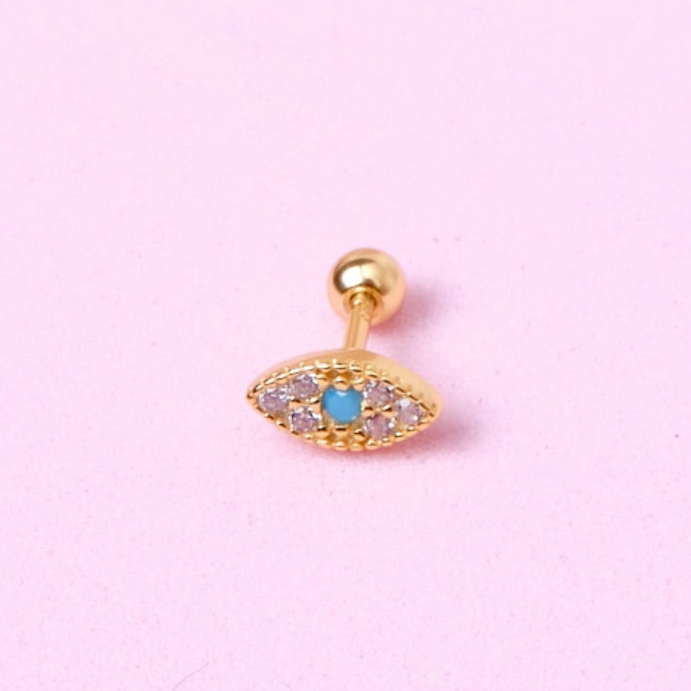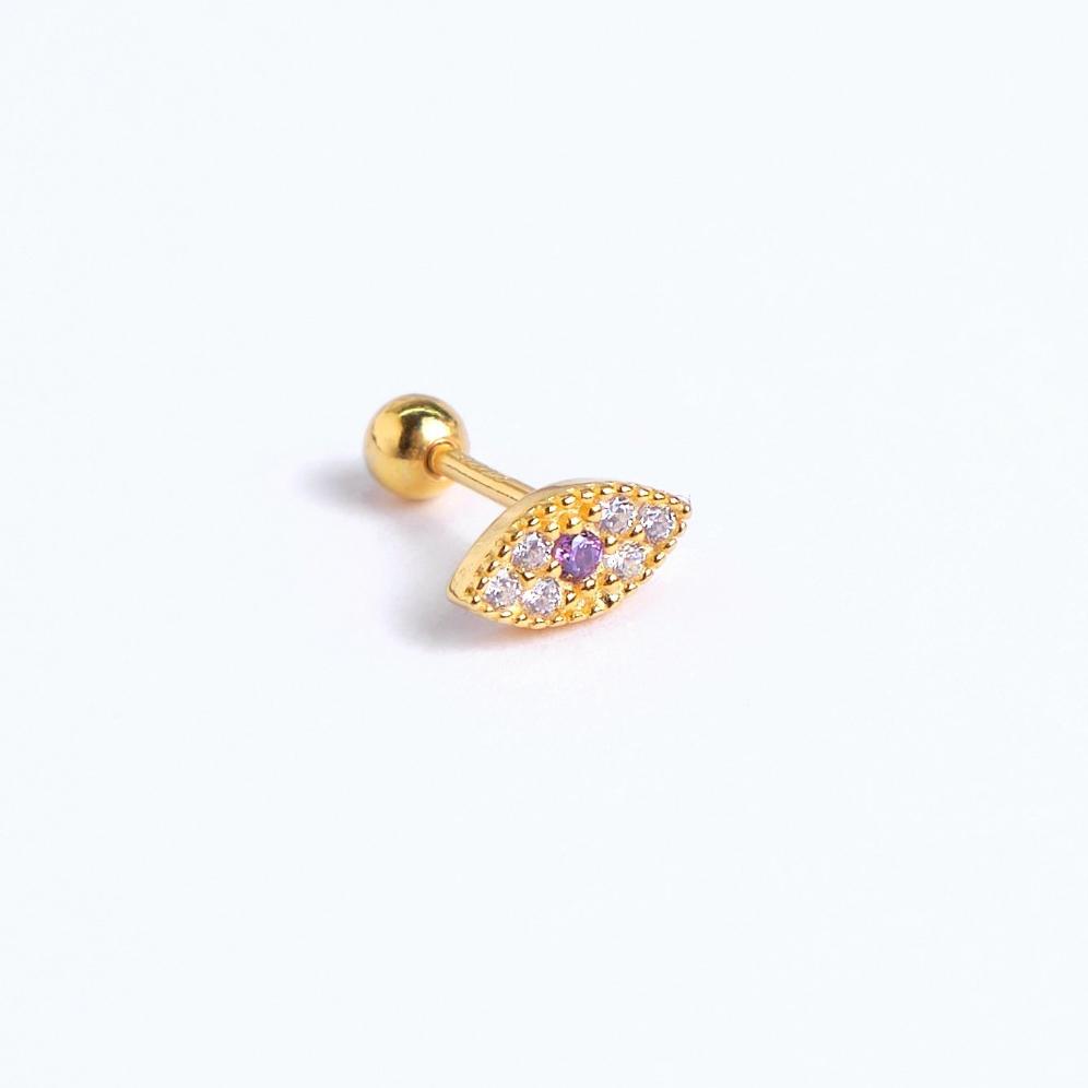 • Piercing para oreja de plata con baño de oro y circonitas.