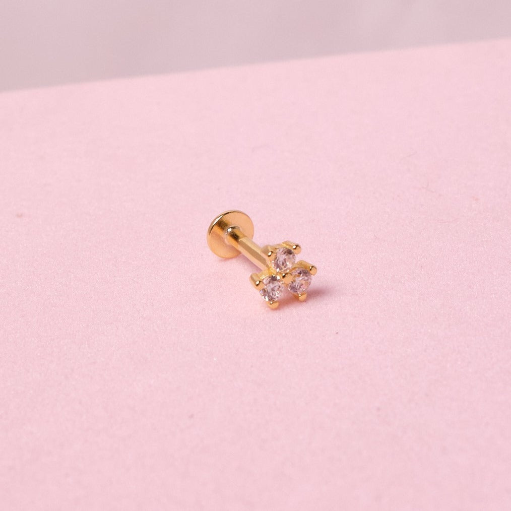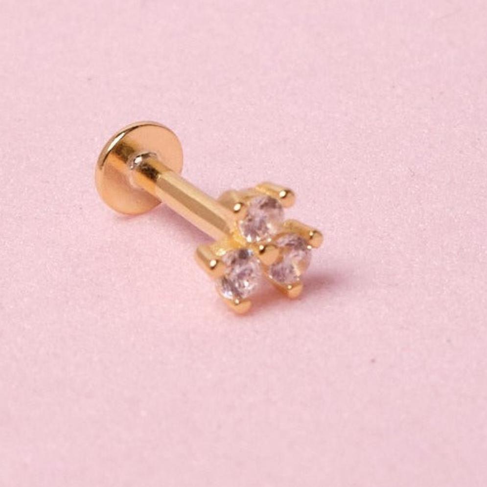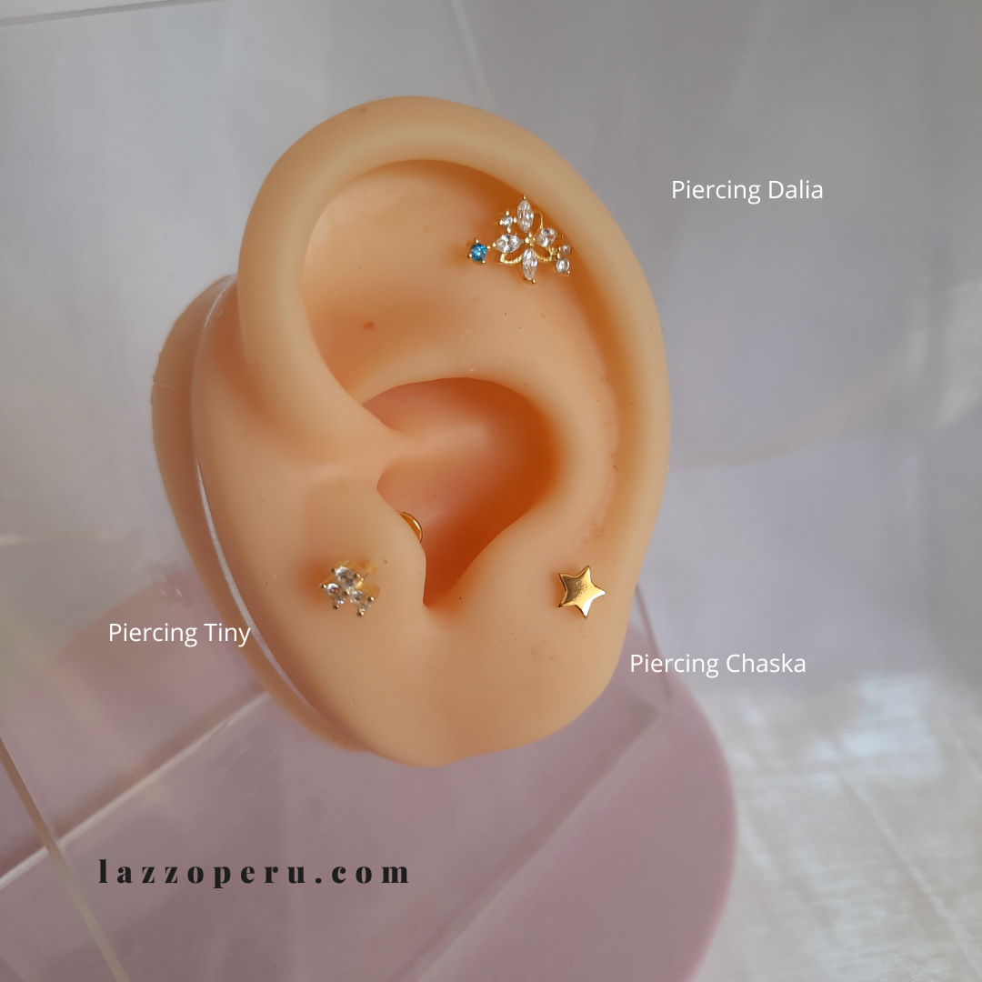 • Piercing para oreja de plata, baño de oro y circonitas blancas.