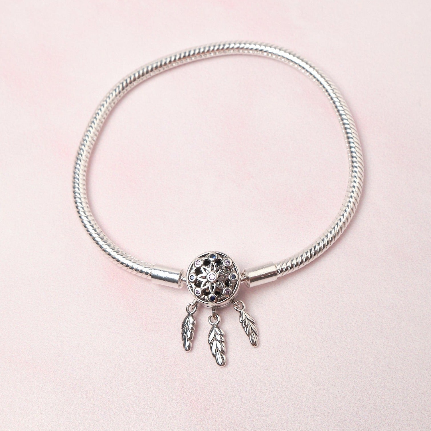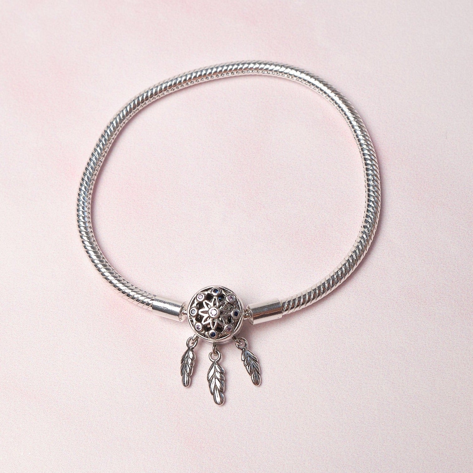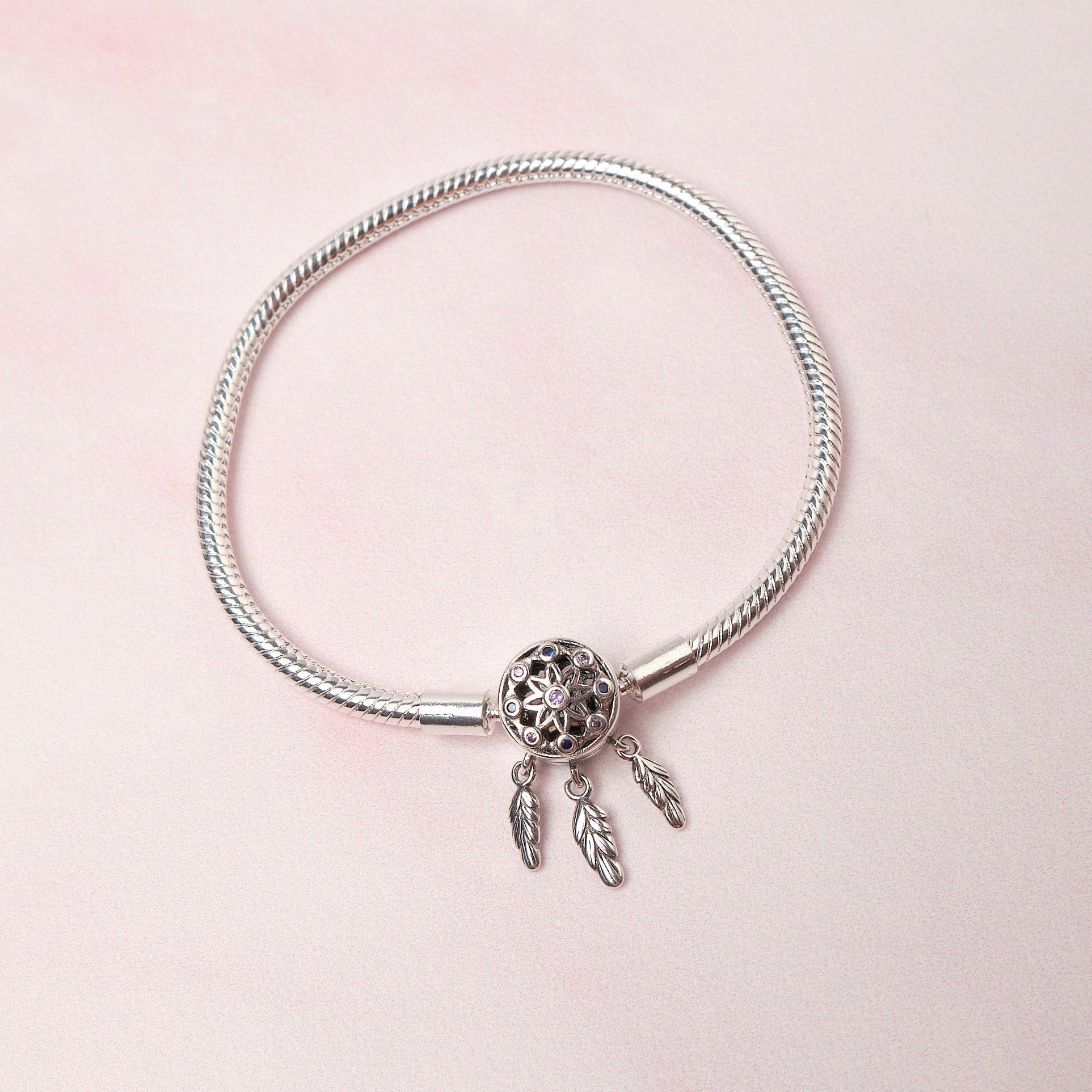 • Pulsera atrapasueños en cobre bañado en plata 925 y circonitas moradas y azules.