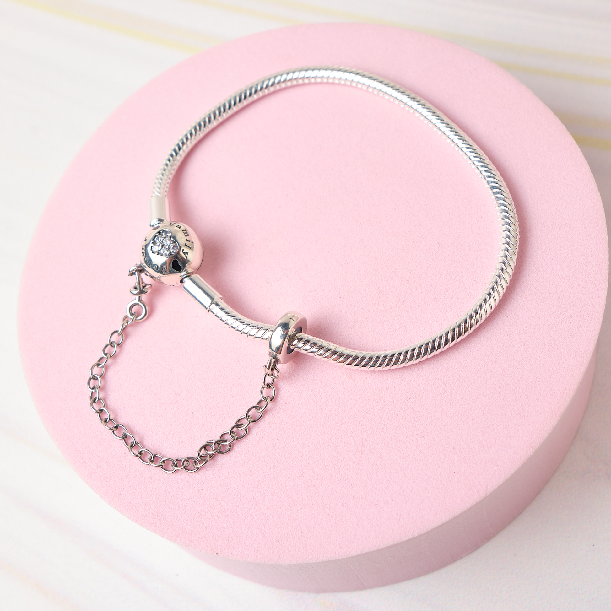 • Vínculos Inquebrantables. Pulsera con cadena de seguridad de cobre bañado en plata 925, honrando los lazos eternos.