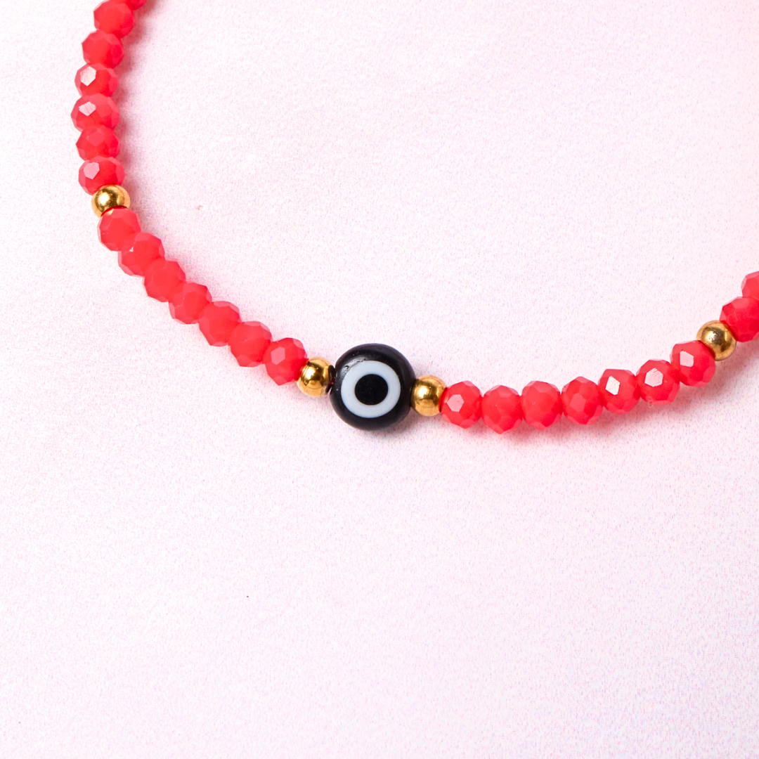 • ✨Protección con estilo: pulsera de ojo turco negro, cristales Murano y detalles en acero.